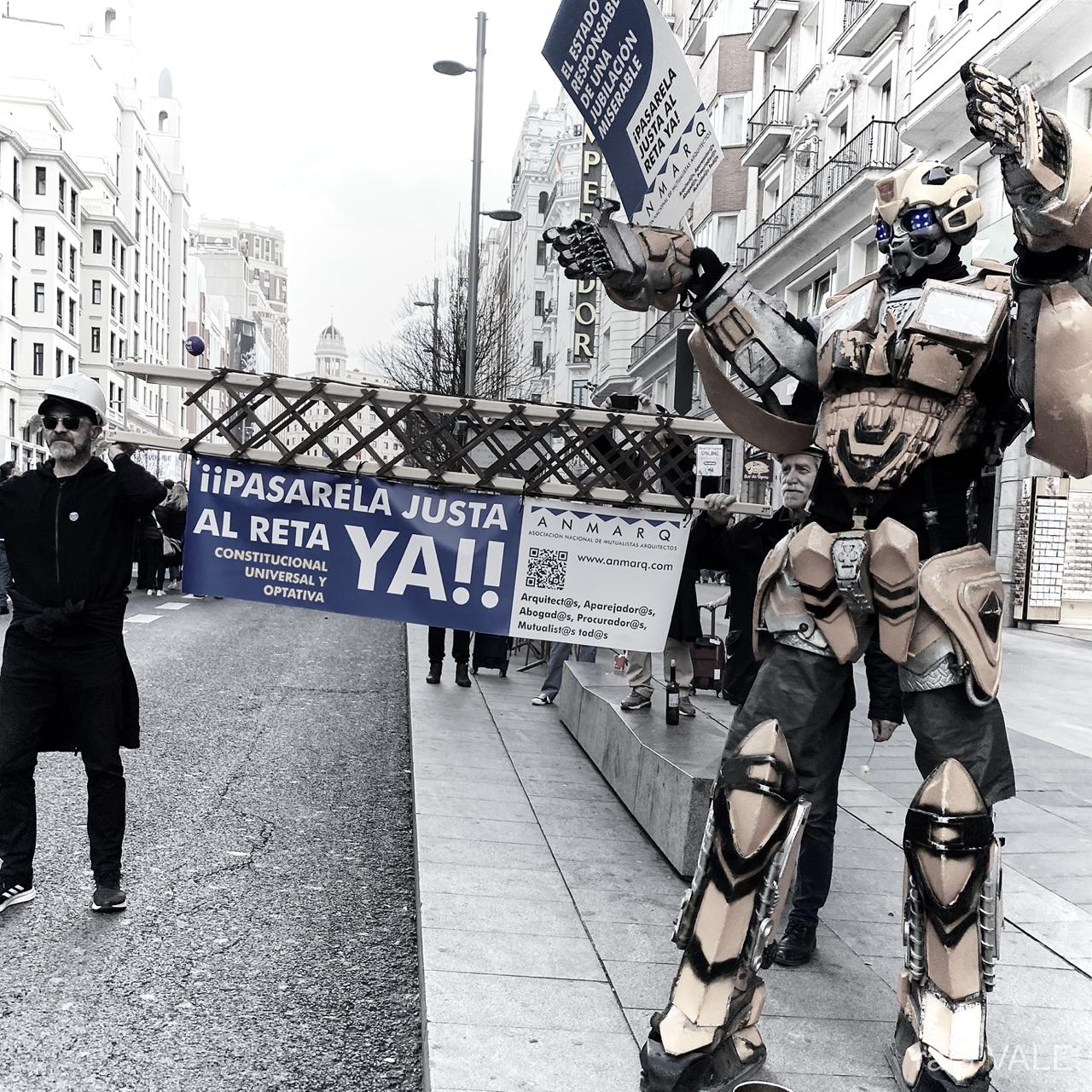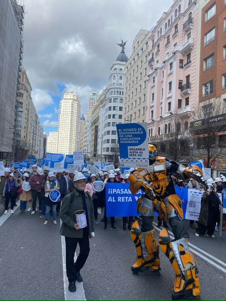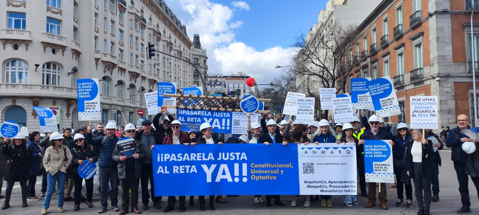 El 22 de Febrero se realizó la manisfestación en Madrid por una Pasarela al RETA YA, convocada por Marea Negra y a la que nos sumamos ANMARQ, Plataforma y J2 entre otros. La manifestación fue un exito de participación y nuestos socios y simpatizantes nos significamos como una marea blanca de cascos de obra.