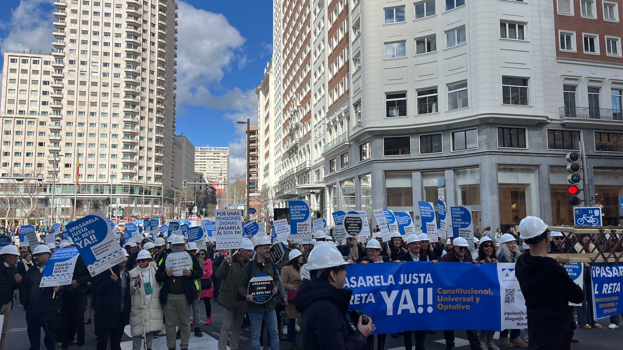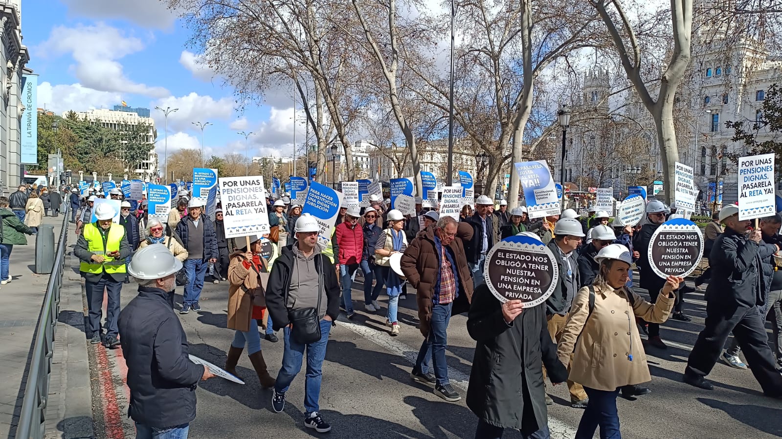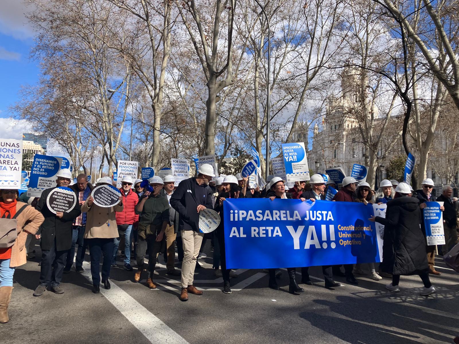 El 22 de Febrero se realizó la manisfestación en Madrid por una Pasarela al RETA YA, convocada por Marea Negra y a la que nos sumamos ANMARQ, Plataforma y J2 entre otros. La manifestación fue un exito de participación y nuestos socios y simpatizantes nos significamos como una marea blanca de cascos de obra.